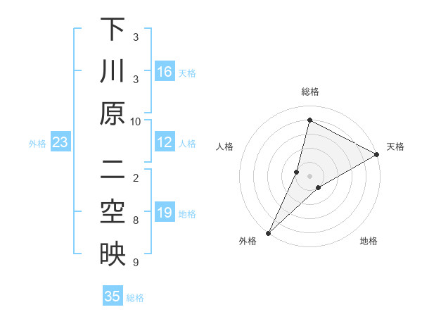 下川原 二空映さんを姓名の画数から五運を鑑定
