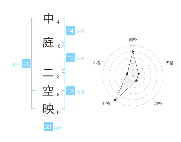 中庭 二空映さんを姓名の画数から五運を鑑定