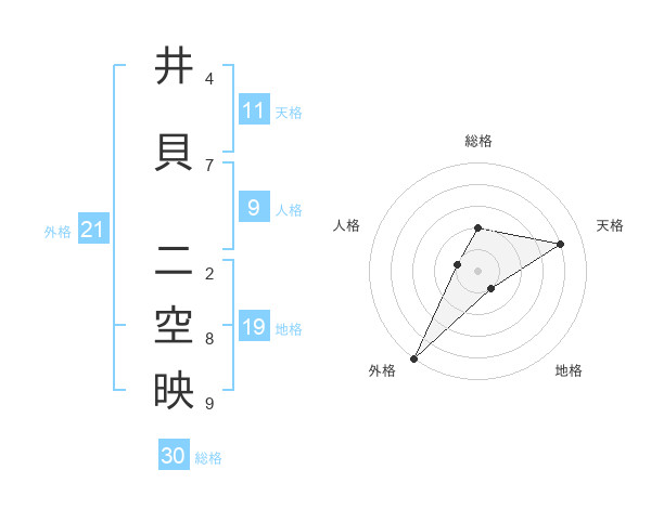 井貝 二空映さんを姓名の画数から五運を鑑定