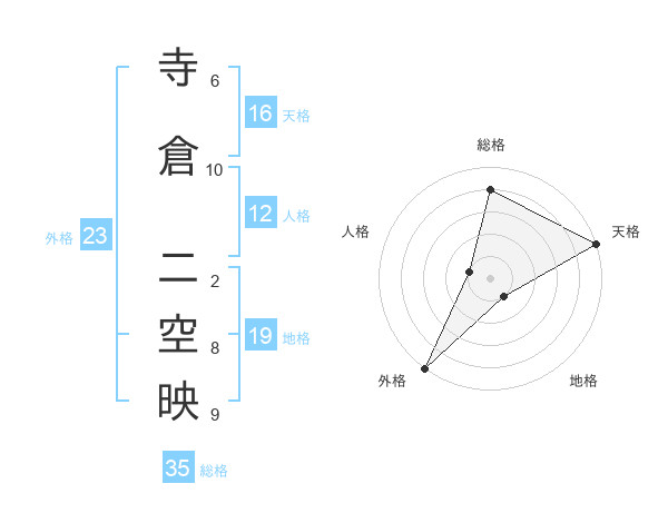 寺倉 二空映さんの総格は35画の4点!