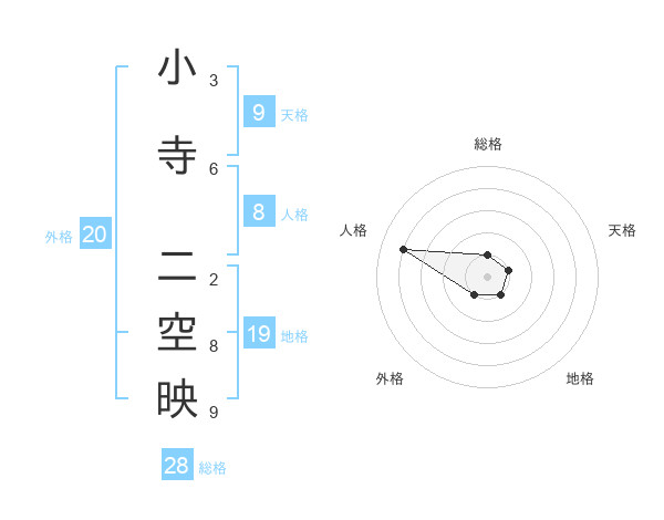 小寺 二空映さんを姓名の画数から五運を鑑定