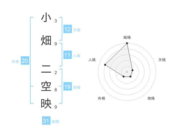 小畑 二空映さんを姓名の画数から五運を鑑定