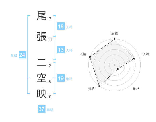尾張 二空映さんを姓名の画数から五運を鑑定