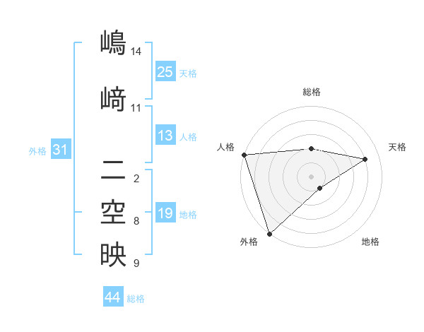 嶋﨑 二空映さんを姓名の画数から五運を鑑定