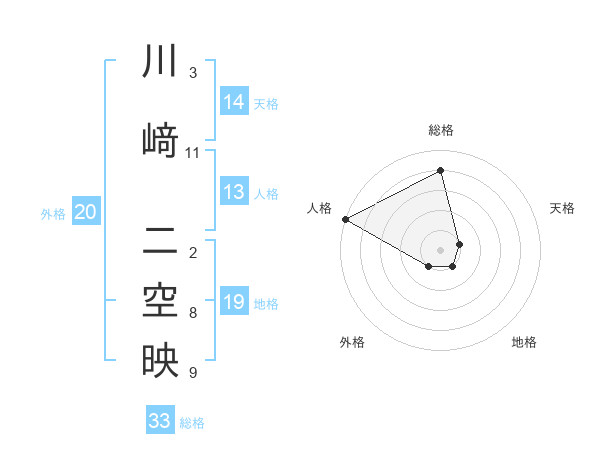 川﨑 二空映さんを姓名の画数から五運を鑑定