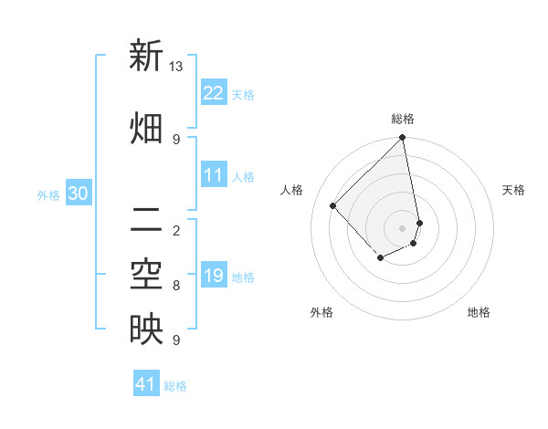 新畑 二空映さんを姓名の画数から五運を鑑定
