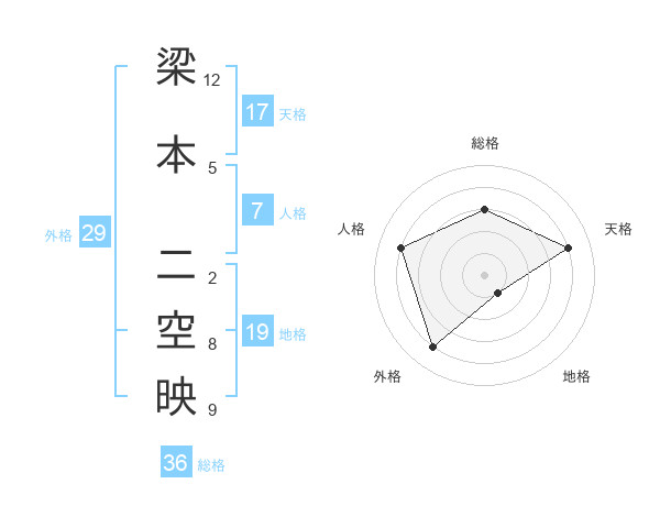 梁本 二空映さんの天格は17画の4点!