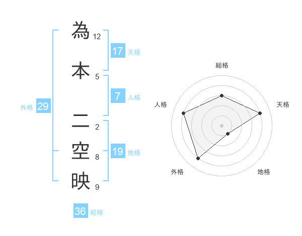 為本 二空映さんの天格は17画の4点!