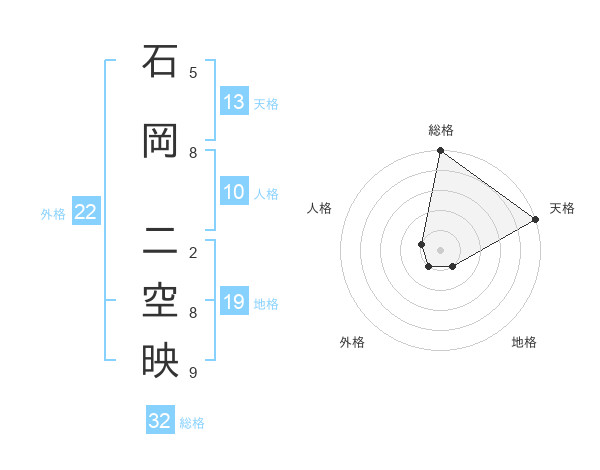 石岡 二空映さんを姓名の画数から五運を鑑定