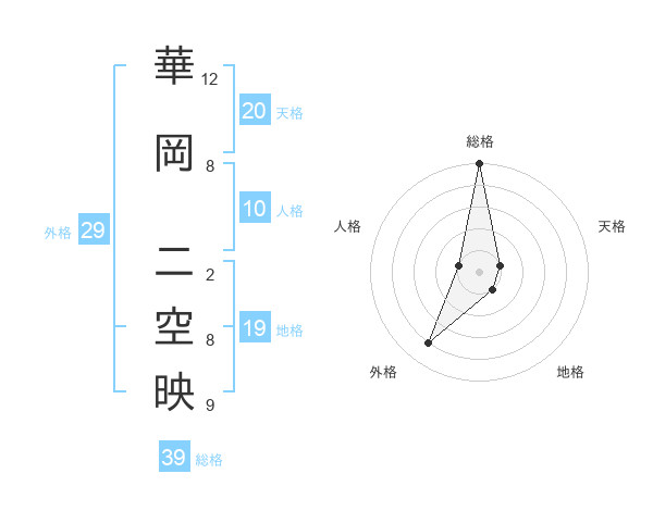 華岡 二空映さんを姓名の画数から五運を鑑定