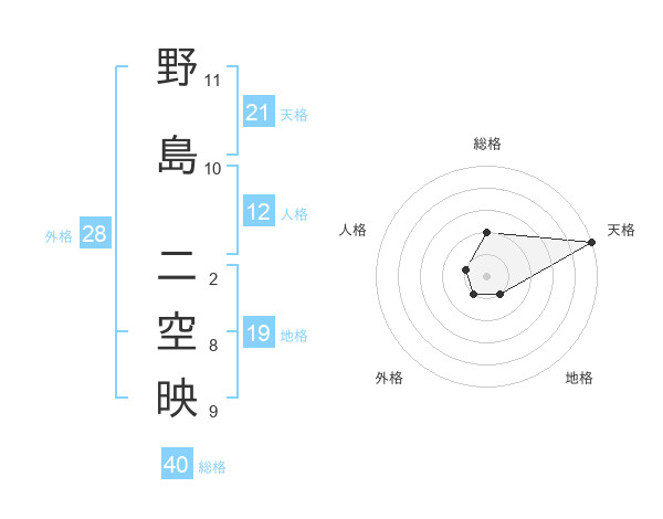 野島 二空映さんの総格は40画の2点!