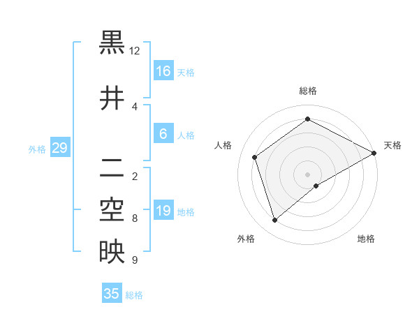 黒井 二空映さんを姓名の画数から五運を鑑定