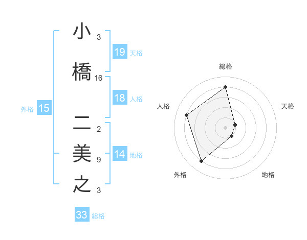 小橋 二美之さんを姓名の画数から五運を鑑定