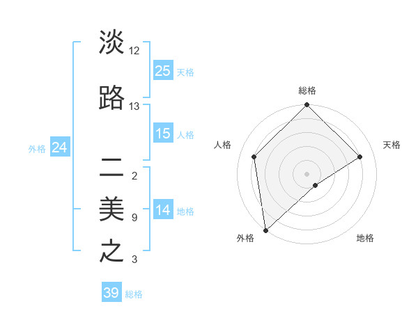 淡路 二美之さんを姓名の画数から五運を鑑定