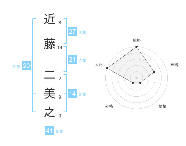 近藤 二美之さんの総格は41画の5点!