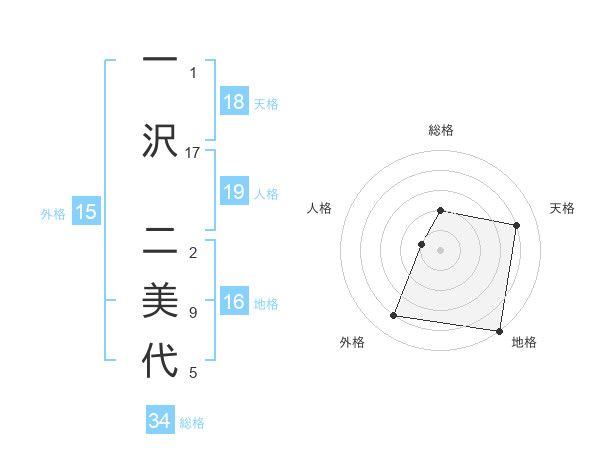 一沢 二美代さんの総格は34画の2点!