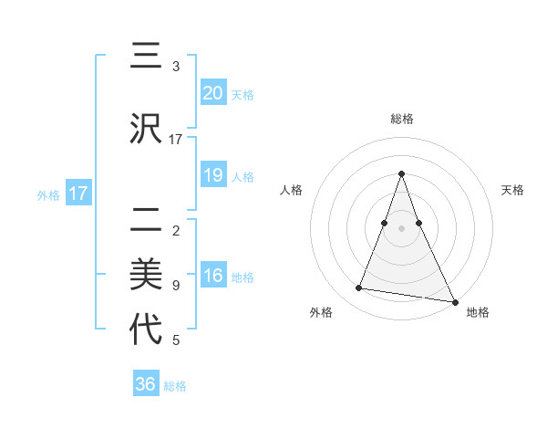 三沢 二美代さんを姓名の画数から五運を鑑定