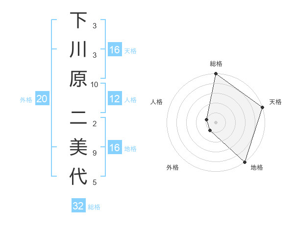 下川原 二美代さんの総格は32画の5点!