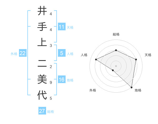 井手上 二美代さんの総格は27画の3点!