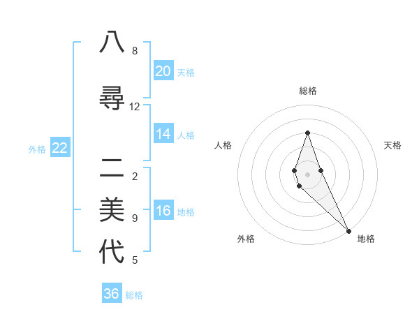 八尋 二美代さんを姓名の画数から五運を鑑定