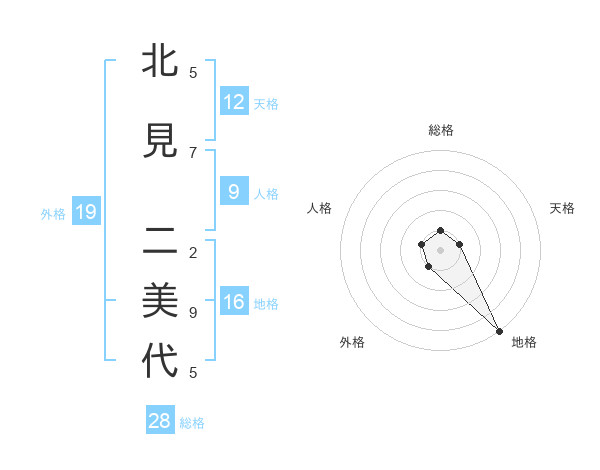 北見 二美代さんの総格は28画の1点!