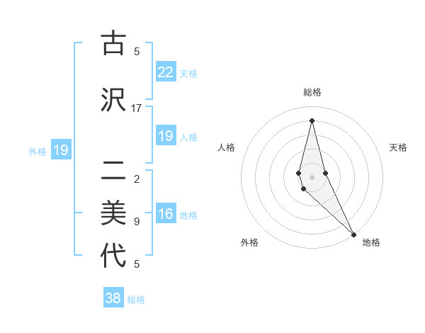 古沢 二美代さんを姓名の画数から五運を鑑定