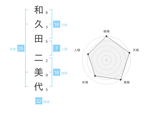 和久田 二美代さんを姓名の画数から五運を鑑定