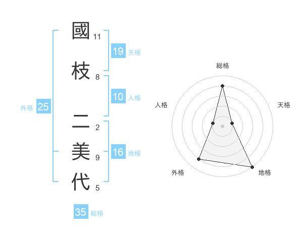 國枝 二美代さんを姓名の画数から五運を鑑定