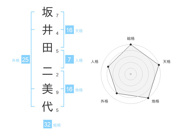 坂井田 二美代さんを姓名の画数から五運を鑑定
