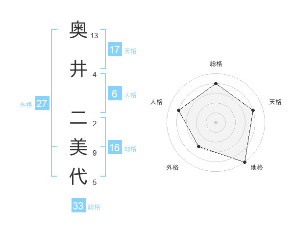 奥井 二美代さんを姓名の画数から五運を鑑定