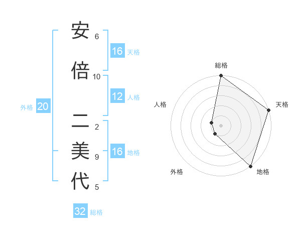 安倍 二美代さんの天格は16画の5点!