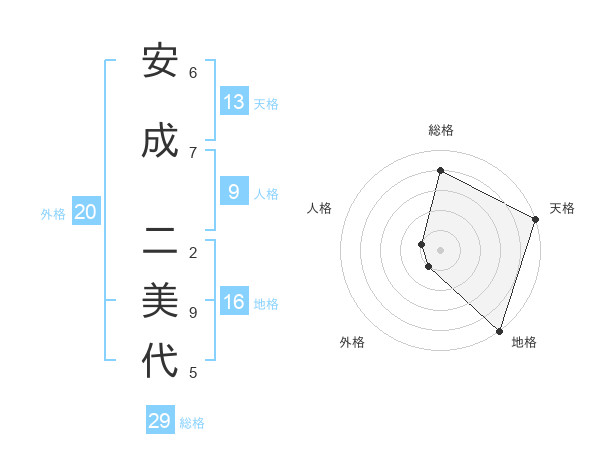 安成 二美代さんの天格は13画の5点!