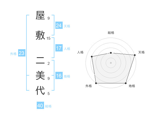 屋敷 二美代さんの天格は24画の5点!