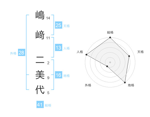 嶋﨑 二美代さんを姓名の画数から五運を鑑定