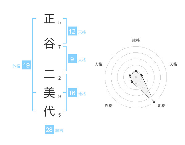 正谷 二美代さんを姓名の画数から五運を鑑定