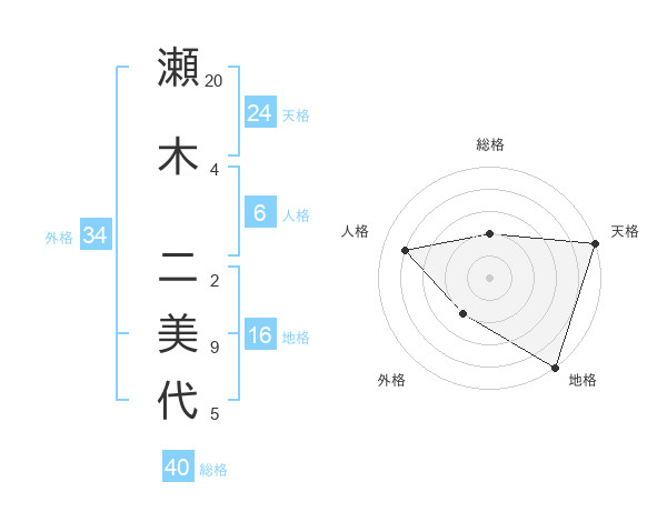 瀬木 二美代さんを姓名の画数から五運を鑑定