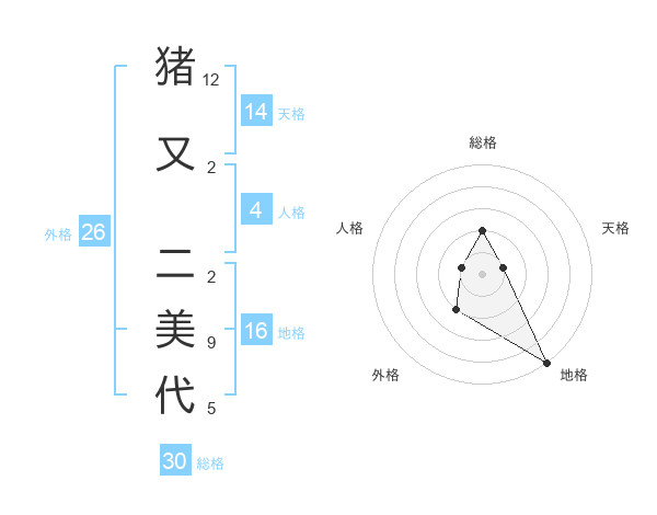 猪又 二美代さんを姓名の画数から五運を鑑定