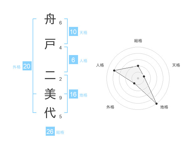 舟戸 二美代さんを姓名の画数から五運を鑑定
