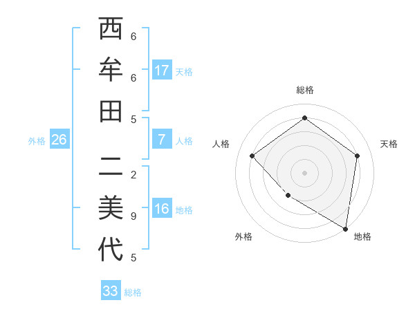 西牟田 二美代さんを姓名の画数から五運を鑑定