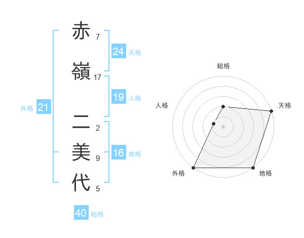 赤嶺 二美代さんの外格は21画の5点!