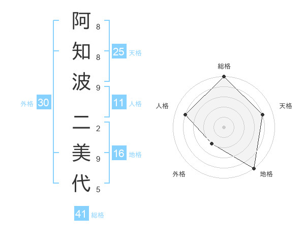 阿知波 二美代さんを姓名の画数から五運を鑑定