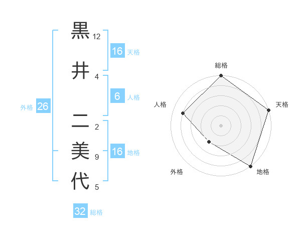 黒井 二美代さんを姓名の画数から五運を鑑定