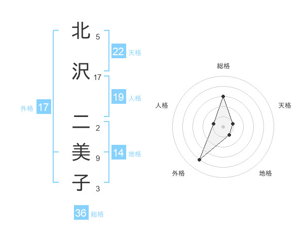 北沢 二美子さんを姓名の画数から五運を鑑定