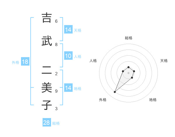 吉武 二美子さんを姓名の画数から五運を鑑定