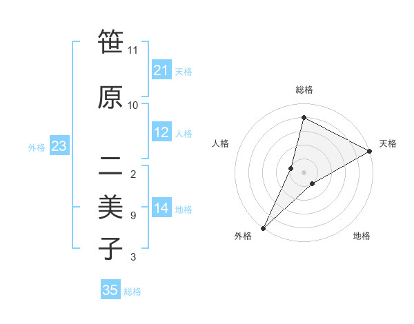笹原 二美子さんを姓名の画数から五運を鑑定