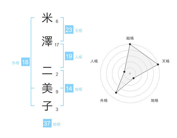 米澤 二美子さんを姓名の画数から五運を鑑定