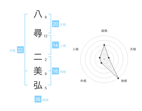 八尋 二美弘さんを姓名の画数から五運を鑑定
