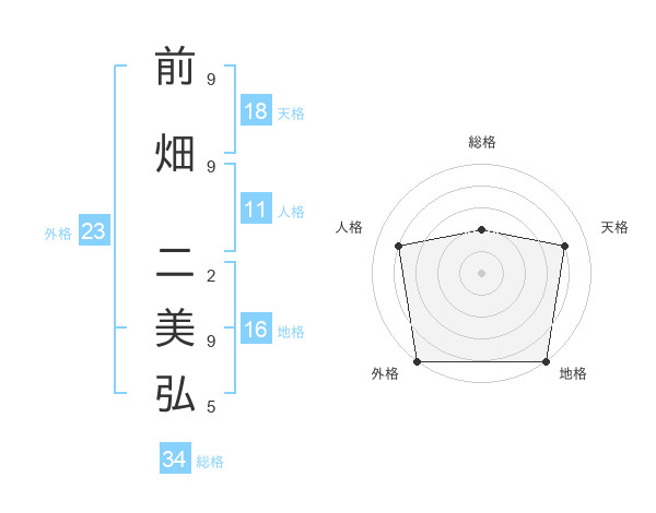 前畑 二美弘さんの外格は23画の5点!