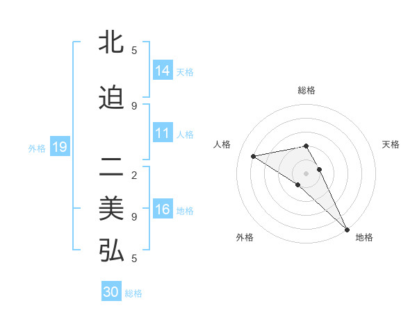 北迫 二美弘さんを姓名の画数から五運を鑑定