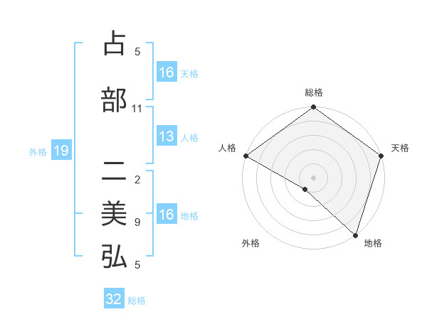 占部 二美弘さんの天格は16画の5点